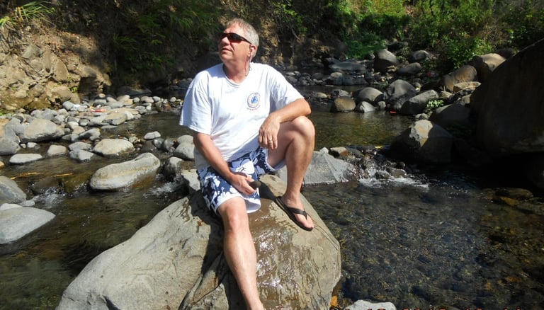 Sitting on a rock in the middle of a mountain stream in Bataan province.