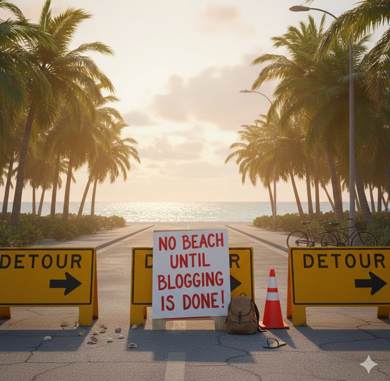 When everything you do is digital, it means you really never get to enjoy much time away from your computer. So now when I think of submerging myself back into the blog-o-sphere and all that it entails, I can literally imagine tall, wide roadblocks being setup on the street between our new home and the beach. Big detour signs will be installed and directed at me that will prevent me from fulfilling my dates with afternoon sea breezes. So maybe now you understand my resistance to all this and everything that is digital. Not that it really matters because either you see this as entertaining or maybe it's that you have nothing else to do. But the chances are if you are here and reading this at this point, you are either enjoying my sufferance or I may be providing you with a least some inspiration. Then again, maybe it is you, the reader, that inspires me - to write - to inspire you.